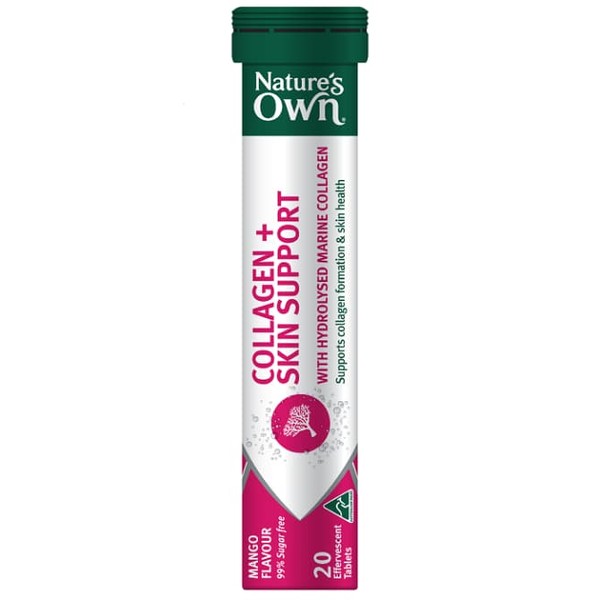 Nature's Own Collagen + Skin Support is a great tasting, mango flavoured drinkable vitamin. It contains hydrolysed marine collagen, plus other skin support ingredients such as Biotin, Zinc and Vitamin C.