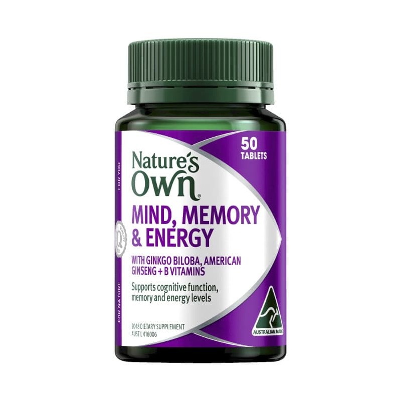 Support memory, mental recall, and cognitive function with Nature's Own Mind Memory & Energy 50. This herbal extract and vitamin supplement is specially formulated to support memory and cognitive function. It also supports your body’s energy levels and helps relieve tiredness and fatigue, as well as supporting the healthy function of the nervous system. Australian Made®, and quality tested during manufacturing to ensure product consistency and potency, Nature's Own Mind Memory & Energy tablets contain no added gluten, lactose, artificial colours, artificial flavours, artificial sweeteners, dairy products or animal-derived products. Adults 19 years and older, take 2 tablets once daily or as recommended by your healthcare professional. Always read the label and follow the directions for use.