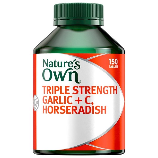 Nature's Own Triple Strength Garlic + Vitamin C + Horseradish Tab X 150 reduces the duration and severity of common cold symptoms and supports healthy immune system function
