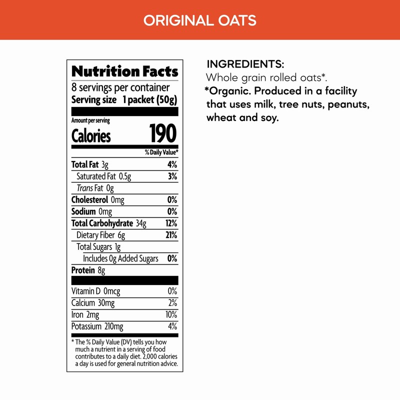 A nutritious, wholesome breakfast is the perfect way to start the day. With Nature's Path Original Instant Oatmeal you get a hearty meal in just 5 minutes that is packed with 50g of whole grains and 8g of protein. Indulge your appetite with the delectable taste of our premium oatmeal that can be served both hot and as overnight oatmeal, as well as topped with fruit, nut butters, nuts and seeds, or granola. At Nature's Path we hold organic to an even higher standard: to build and regenerate the soil. As pioneers of the organic movement, we believe organic food and farming is the best way to care for our bodies and for the planet. We always have and always will use our voice to stand for what we believe is right, and what organic truly means.