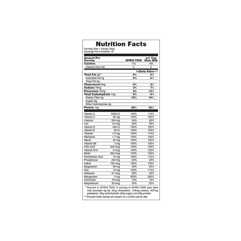 Complete protein formula from soy (mainly), rice, pea and spirulina. Total protein 41%. It also contains vitamins, minerals, trace elements, fiber, lecithin, enzymes, lipotropic substances.