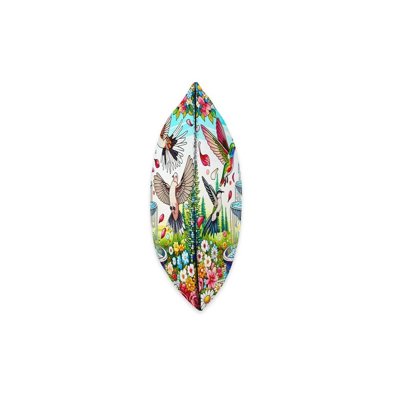 - The design captures the essence of a bustling garden oasis, inviting you to relish the joyous communion between blossoms and birds around a water fountain's melody.