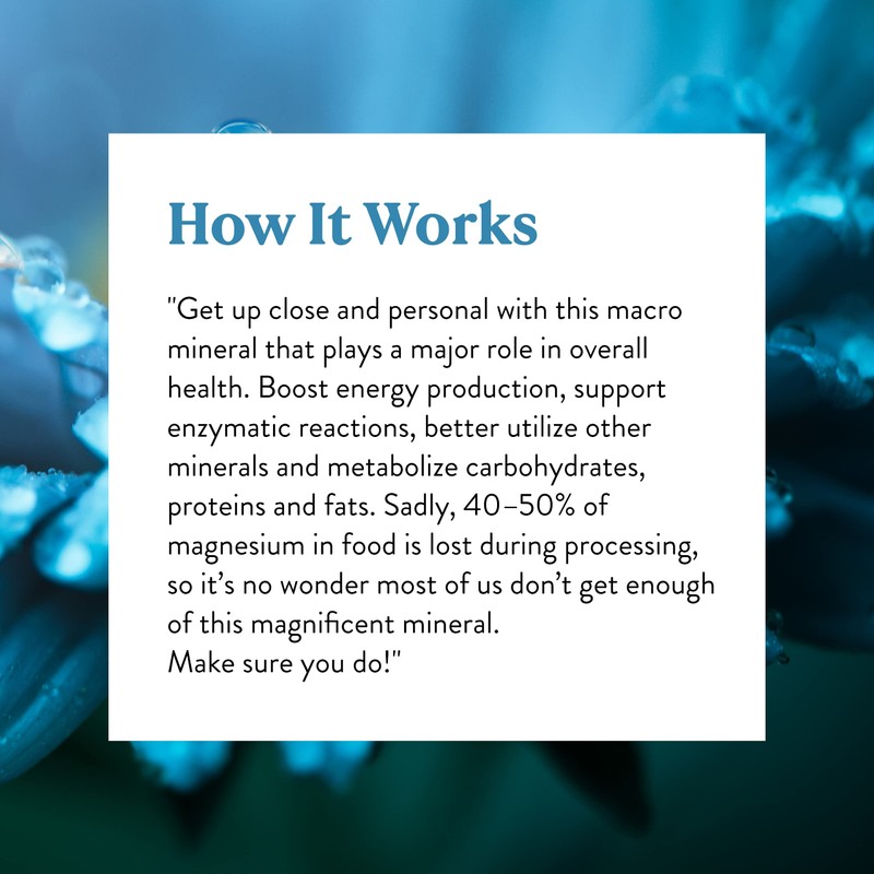 - Maximizes Energy Production - Magnesium is critical to energy production and facilitates over 300 enzymatic reactions in the body.