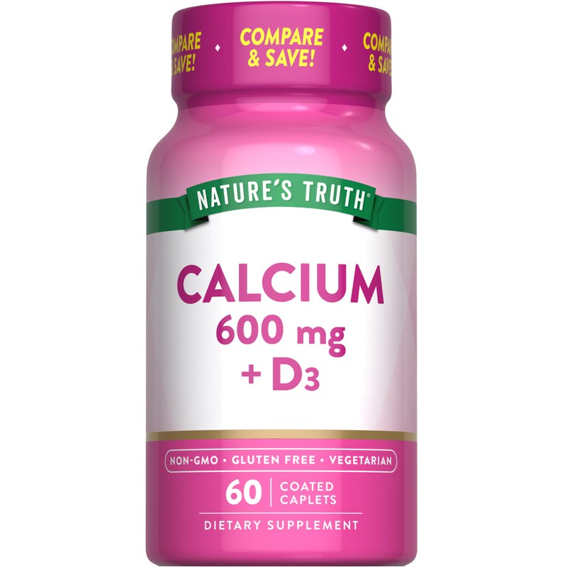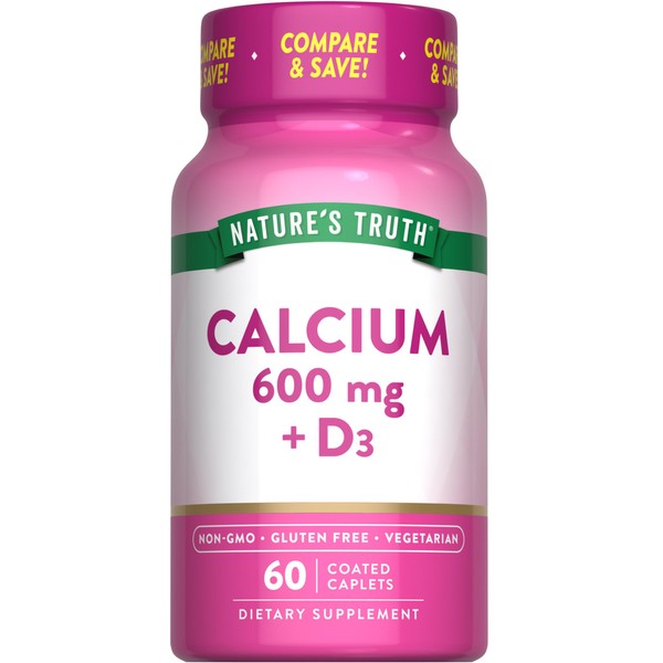 Nature's Truth Calcium 600 mg with Vitamin D3 | Coated Caplets | Calcium Carbonate | Vegetarian, Non-GMO & Gluten Free Supplement
