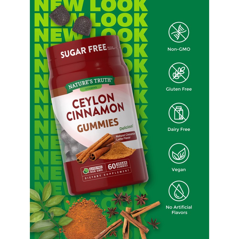 Nature's Truth Ceylon Cinnamon Gummies | 2000mg | 60 Count | Vegan, Non-GMO & Gluten Free Supplement | Sugar Free