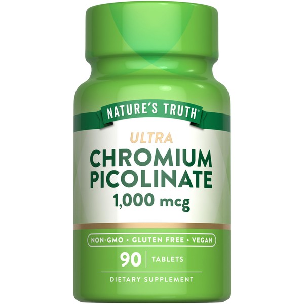 Nature's Truth Ultra Chromium Picolinate 1000mcg | 90 Tablets | Vegan, Non-GMO & Gluten Free Supplement