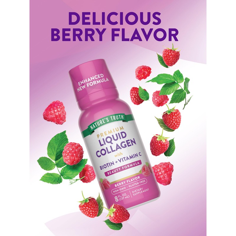Nature's Truth Liquid Collagen | with Biotin | Berry Flavor | 8 oz | Non-GMO and Gluten Free Supplement