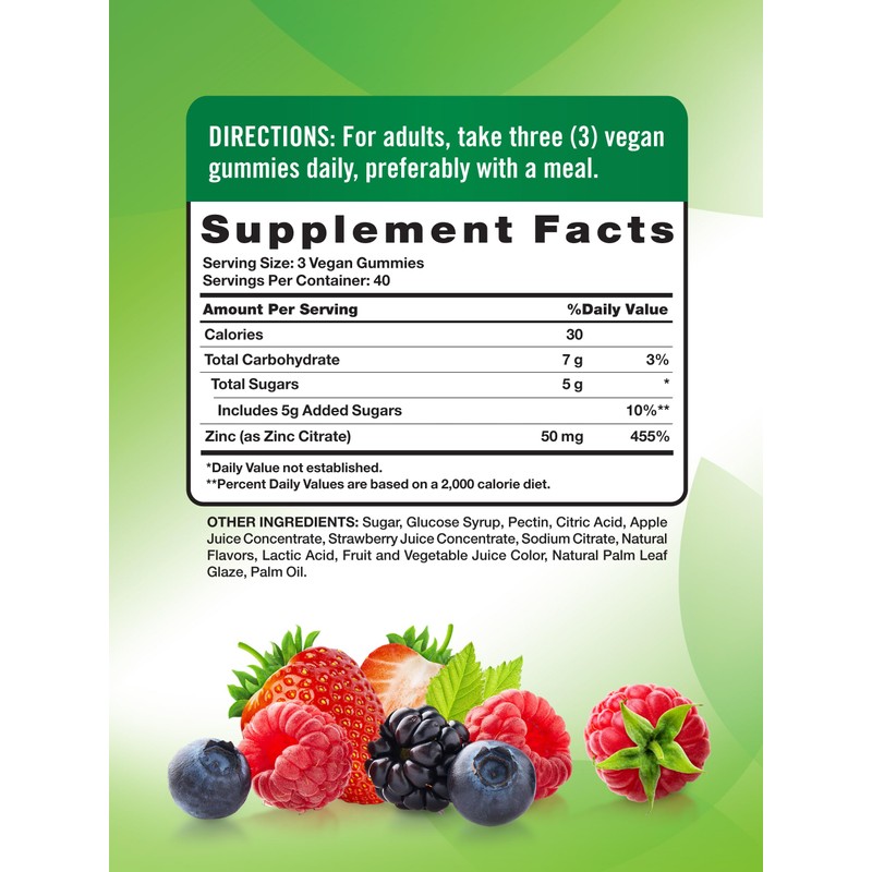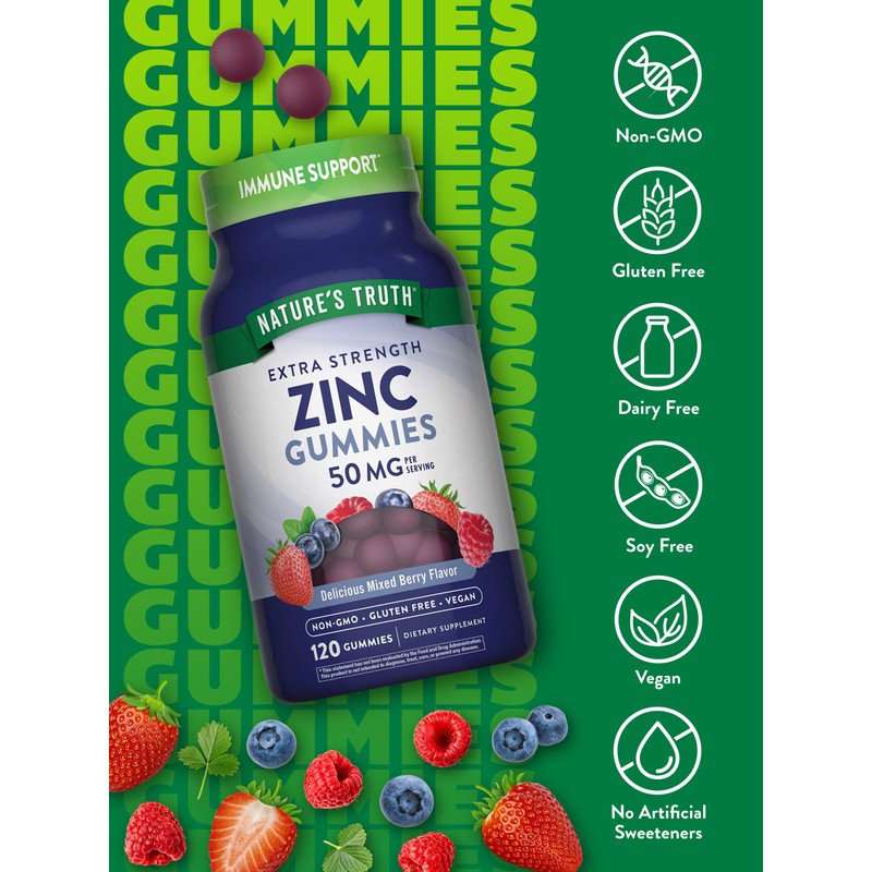 Nature's Truth Nature's Truth Zinc Gummies for Adults | 50mg | 120 Count | Vegan, Non-GMO & Gluten Free Supplement | Mixed Berry Flavor