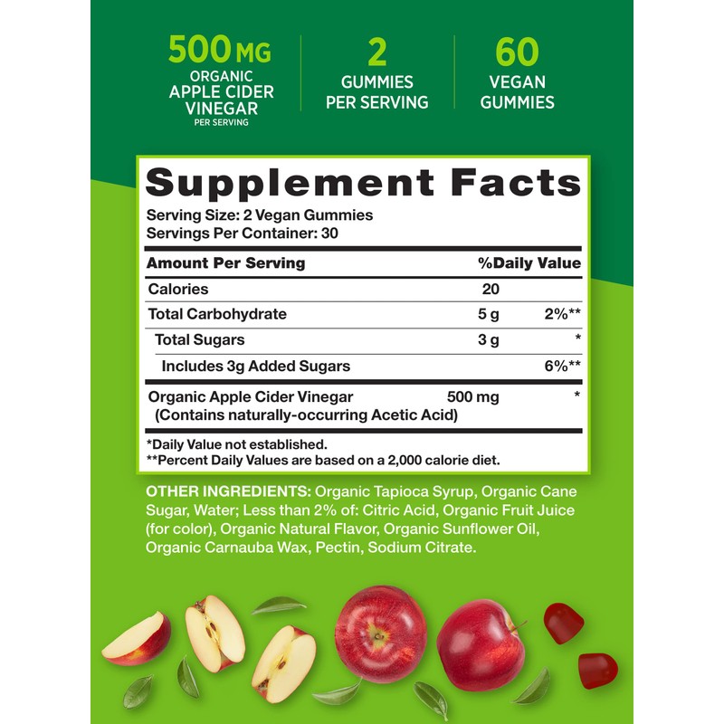 - DELICIOUS GUMMIES: Features 500 mg of Apple Cider Vinegar per serving with no harsh aftertaste