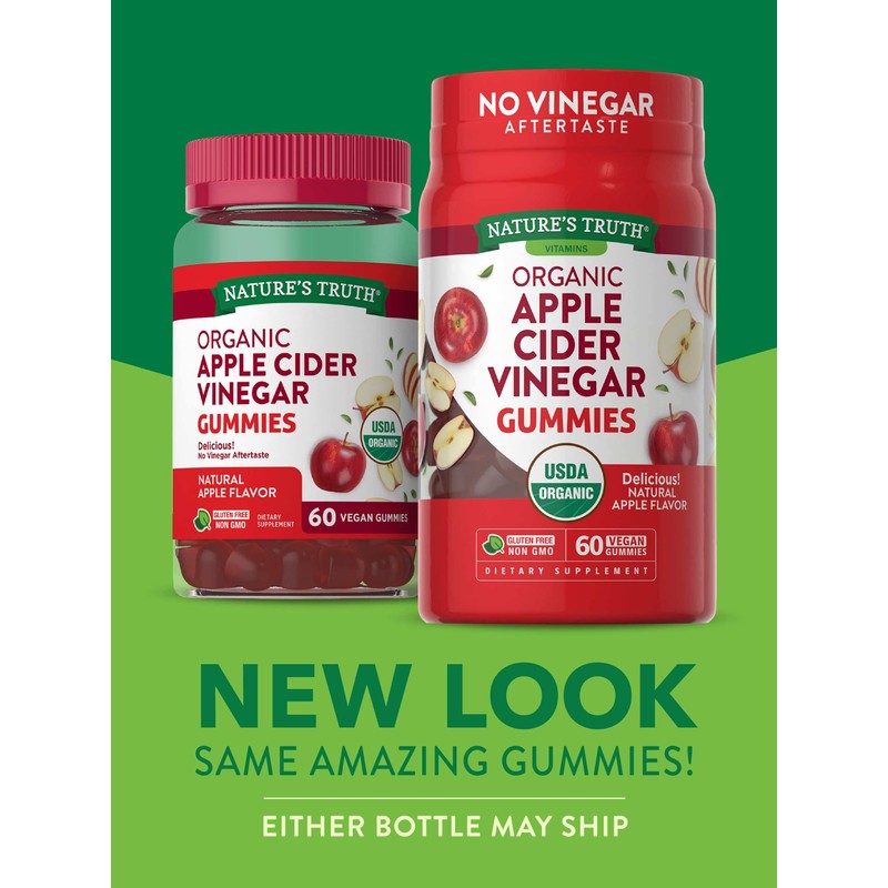 Nature's Truth Organic Apple Cider Vinegar Gummies | 60 Count | Vegan, Gluten Free & Non-GMO Supplement | USDA Certified Organic | Apple Flavor