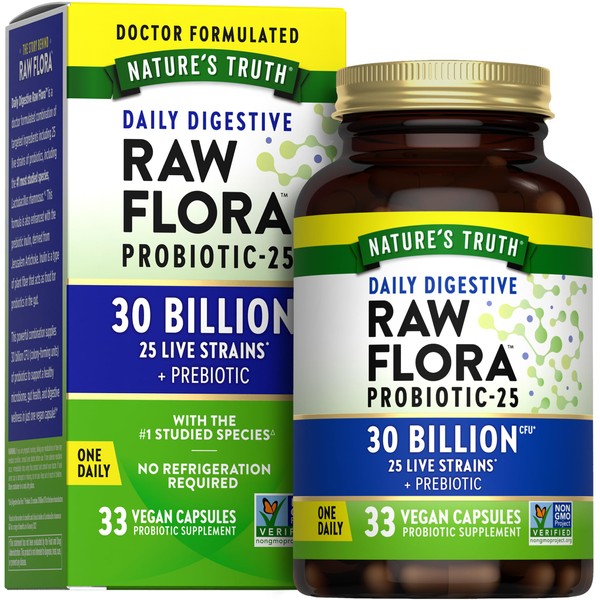 Raw Flora Probiotics with Prebiotics | 30 Billion CFU | 33 Daily Digestive Ca...