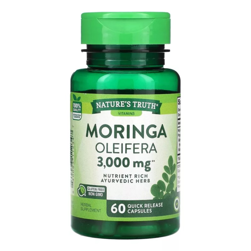 Nature's Truth Suplemento de Moringa Oleífera 3000 mg 60 Cápsulas Sin Sabor