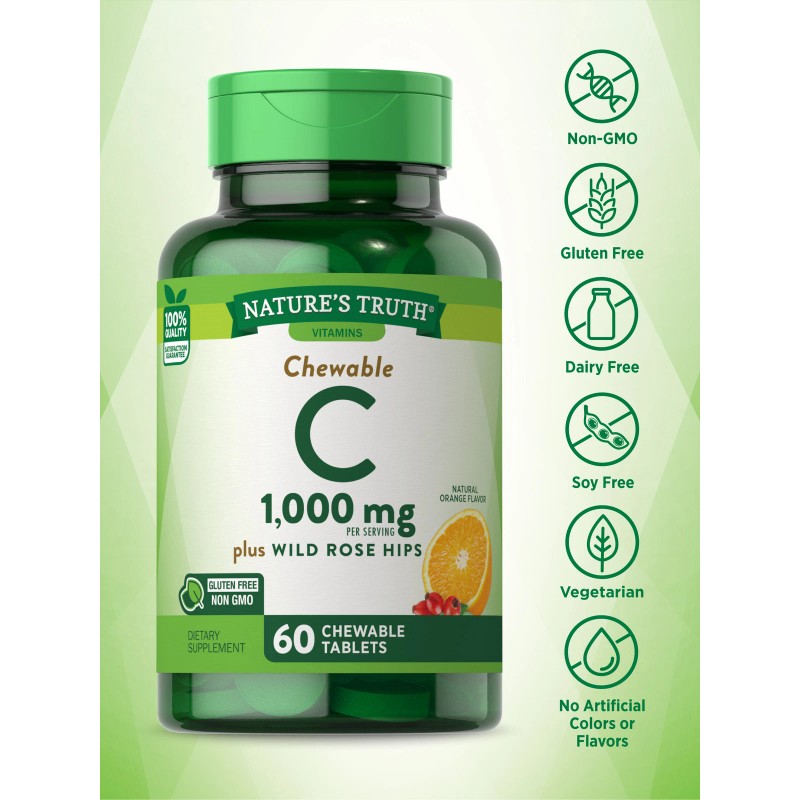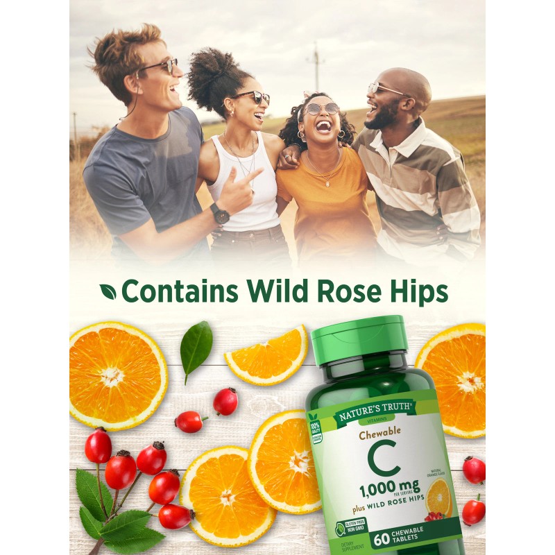 Nature's Truth Vitamin C 1000mg with Rose Hips | 60 Vegan Chewable Tablets | by Nature's Truth