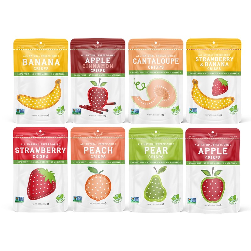 Nature’s Turn Freeze-Dried Fruit Crisps –Healthy, Gluten-Free,Crispy & Delicious, Plant-Based Snack, Ideal for Cereal, Smoothies, School Lunches, & On-the-Go, Sampler Variety Bags of 8 (0.53 oz Each)