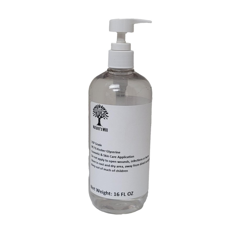 Nature's Will Pure Glycerine/Glycerin USP, FCC Grade for Cosmetic, Natural Moisturizer & Cleanser for Skin, Hair, Crafts, Soap Base Oil - Kosher, Halal Certified 16 FL OZ