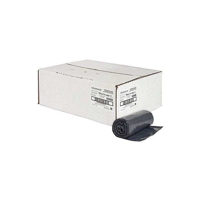 Nature Saver Black Recycled Medium-Duty Trash Liners, 16 Gallon, 0.75 Mil