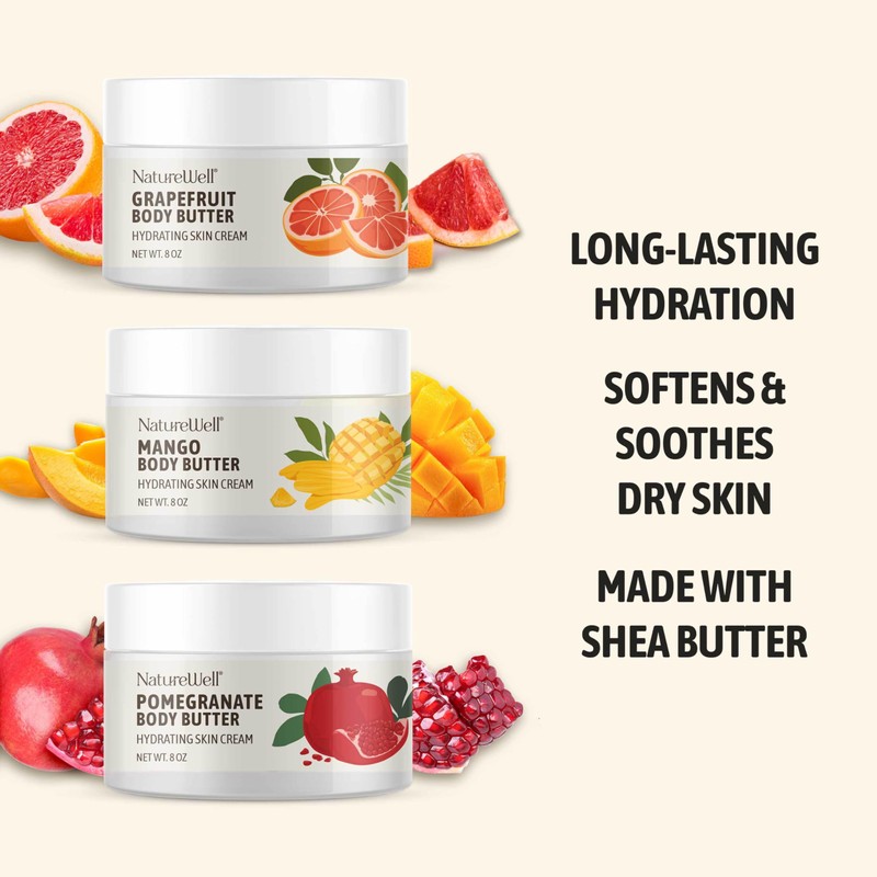 NATURE WELL NATURE WELL Shea Body Butter Variety Pack, Includes Grapefruit, Mango, & Pomegranate, Provides Ultimate Nourishment & Hydration, 3 Pack (8 Ounces Each)