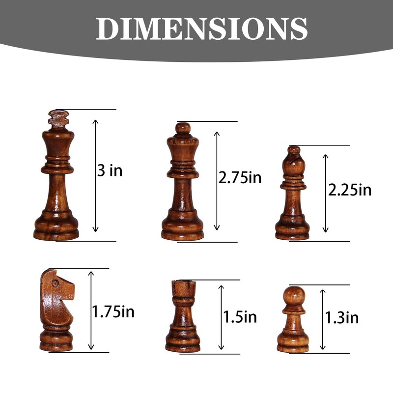 - 2. King height of 3.15 inches, proportionate queen, rook, bishop, knight, and pawns
