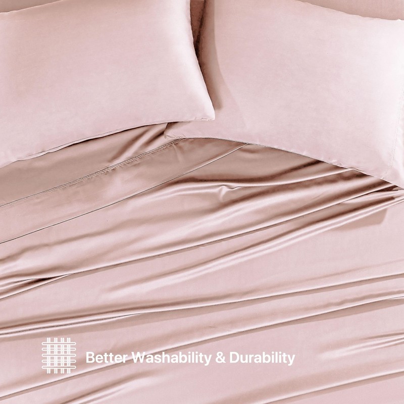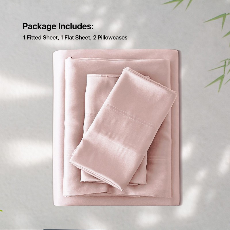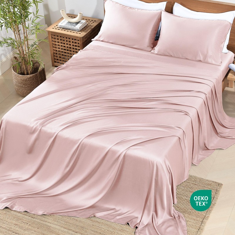 NATUREFIELD 4Pcs Cooling Sheets Set Full Size Rayon Derived from Bamboo Bed Sheets Soft Breathable 1 Flat Sheet, 1 Fitted Sheet, 2 Pillowcases Pink