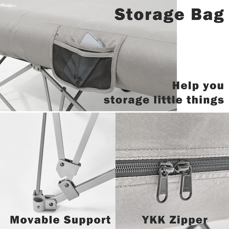 Naturehike CosyWild 2 Person Camping Cot Frame Only, Air Mattress Not Included, Folding Full Size Camping Bed Frame with Side Pocket and Carry Bag