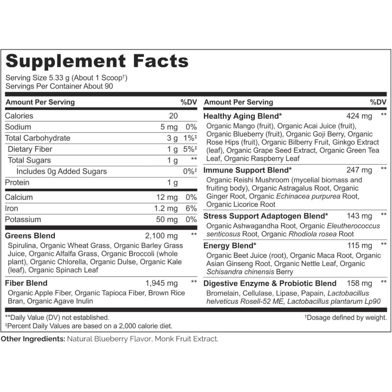 NATURELO Raw Greens Superfood Powder - Mixed Berry - Boost Energy, Detox, Enhanc