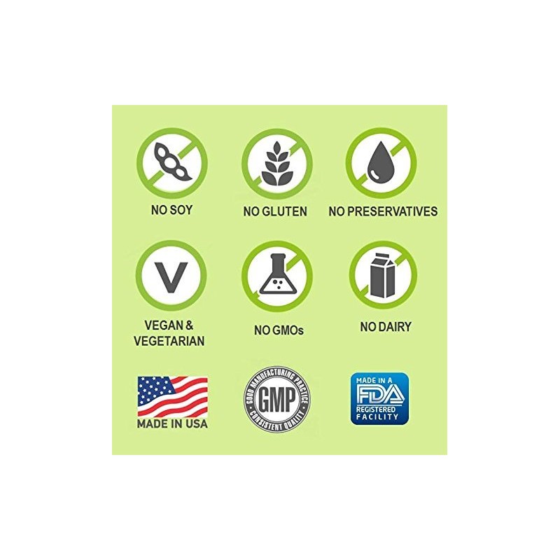 - Clean Label: Made in the USA in a GMP compliant facility. Non GMO, vegetarian, vegan, and gluten free. Does NOT contain soy, dairy, yeast, eggs, nuts, caffeine, preservatives, or coloring.