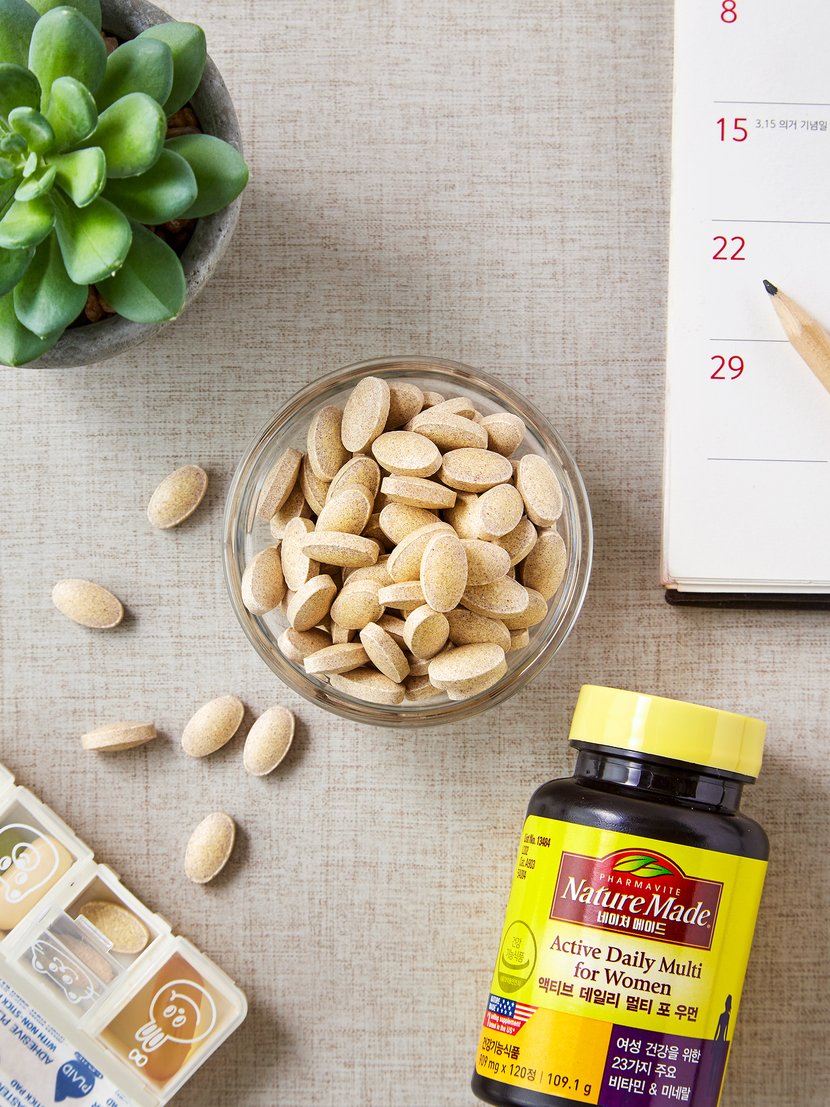 여성에게 필요한 주요 비타민과 미네랄의 개수와 함량까지 고려한 액티브 데일리 멀티 포 우먼입니다. 영양 과학적 구성으로 필요한 영양분을 간편하게 채울 수 있어요. 1일 1회 2정 물과 함께 섭취하여, 활력 넘치는 생활을 만들어보세요. 항산화 효과까지 가지고 있는 고마운 데일리 식품이랍니다.