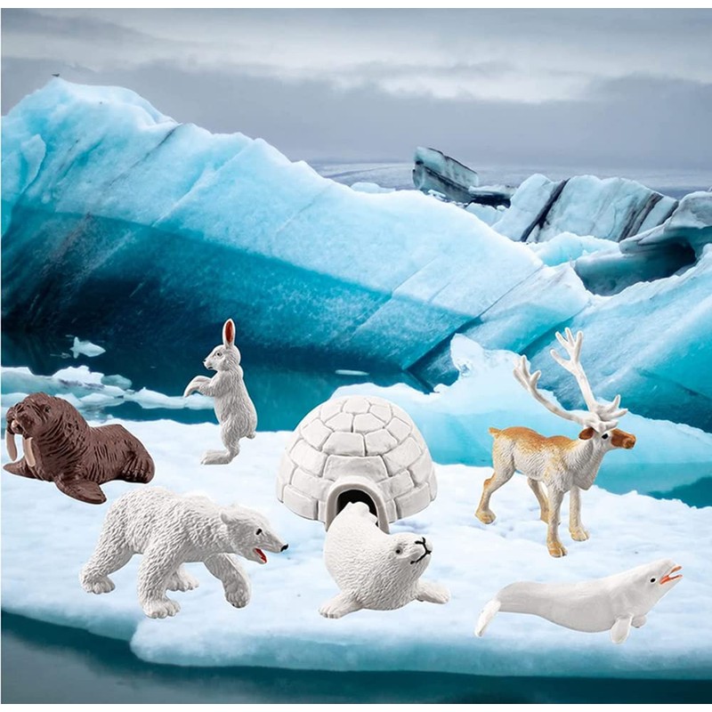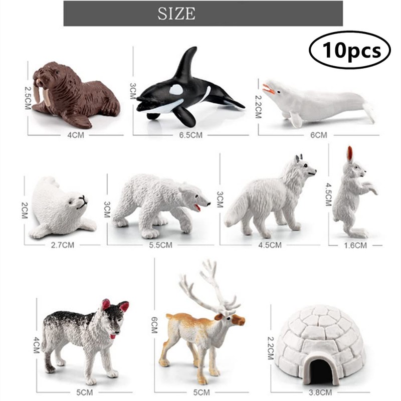 - Incluye: 10 juegos de juguetes de animales árticos incluyendo 1 oso polar, 1 reno, 1 liebre ártica, 1 lobo ártico, 1 morsa, 1 beluga, 1 ballena asesina, 1 zorro ártico, 1 sello ártico, 1 modelo iglú.