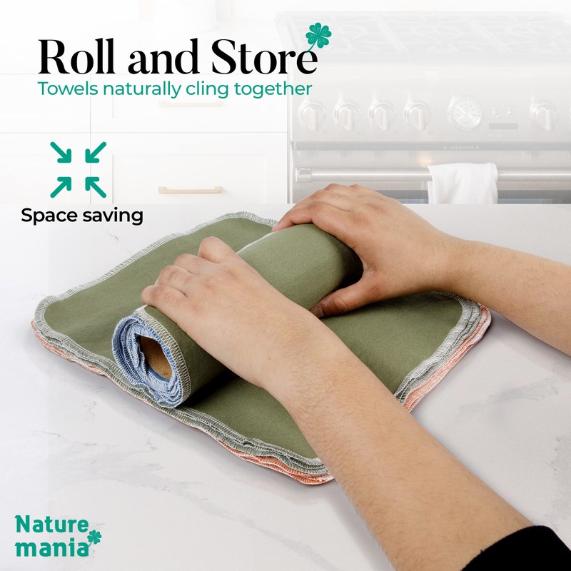 - HELP YOU GET TO ZERO WASTE - Take a leap forward on your zero waste mission with these innovative reusable towels for kitchen! Unlike traditional towels, they can fit into any existing setup without needing snaps to roll them up. Simply stack and re-roll one at a time after washing for maximum convenience - it's that easy!