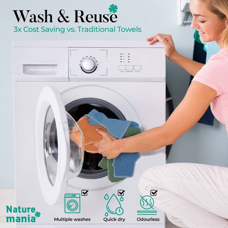 Introducing Naturemania - paper towels replacement cloths - so super-soft and absorbent they will make you forget that disposable paper towels even exist! Our eco-conscious 100% cotton flannel makes these towels durable, skin-friendly and softer than the average single-sided paper towel. The Double-sided sanding process deepens the water absorption capacity so that you don't need to use as many in your cleaning or drying tasks. And, when it comes to washing, Naturemania guarantees no shrinkage or damage—even after multiple machine washes! But where these non-paper towels really shine are in the convenience they provide – hang them, fold them or roll them up into a neat little package when you're done washing