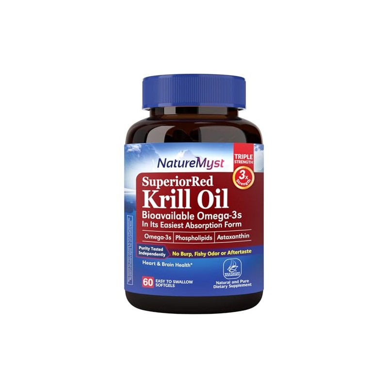 🌟 ⭐ NATUREMYST Aceite de Kril Rojo, Omega-3 con Fosfolípidos y Astaxantina, 60 Cápsulas Blandas, Sin Sabor a Pescado ⭐ 🌟