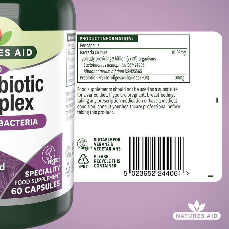 Natures Aid Microbiotic Complex (L.Acidophilus and Bifidus, with FOS), Vegan, 60 Capsules