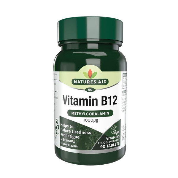 Natures Aid Vitamin B12 1000µg – High Strength Sublingual Tablets – Supports Energy, Metabolism & Nervous System – Vegan, Non-GMO, Gluten-Free Supplement – 90 Tablets