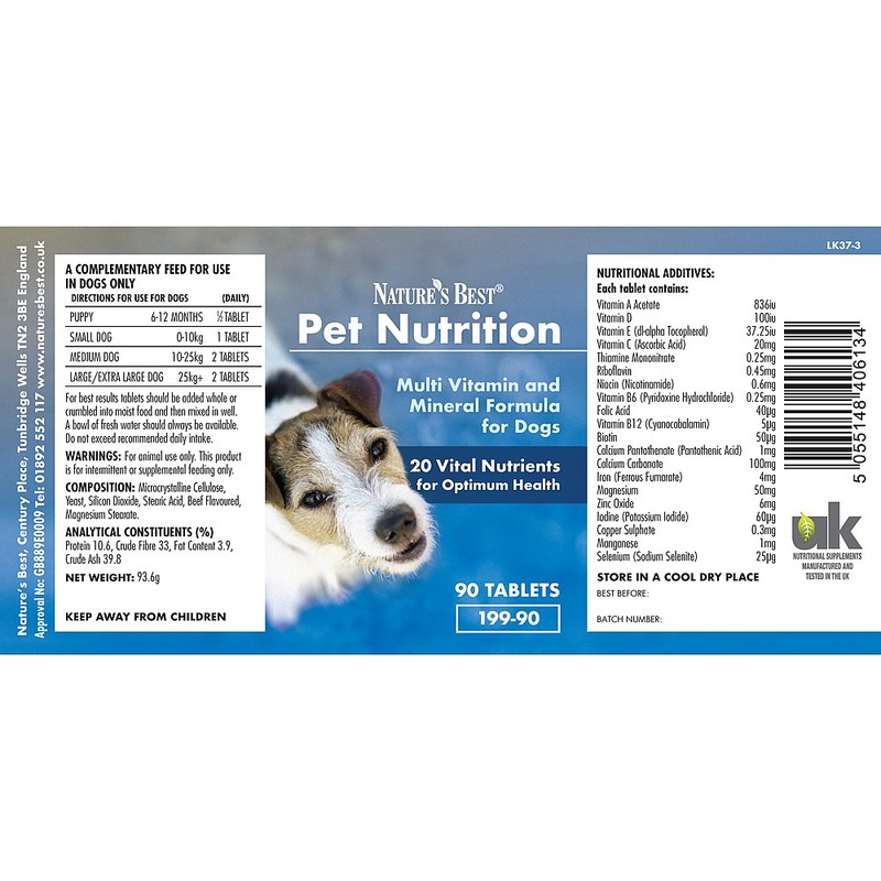 Natures Best Multi Vitamin and Mineral for Dogs, Contains 22 Vital Nutrients, 90 TABLETS