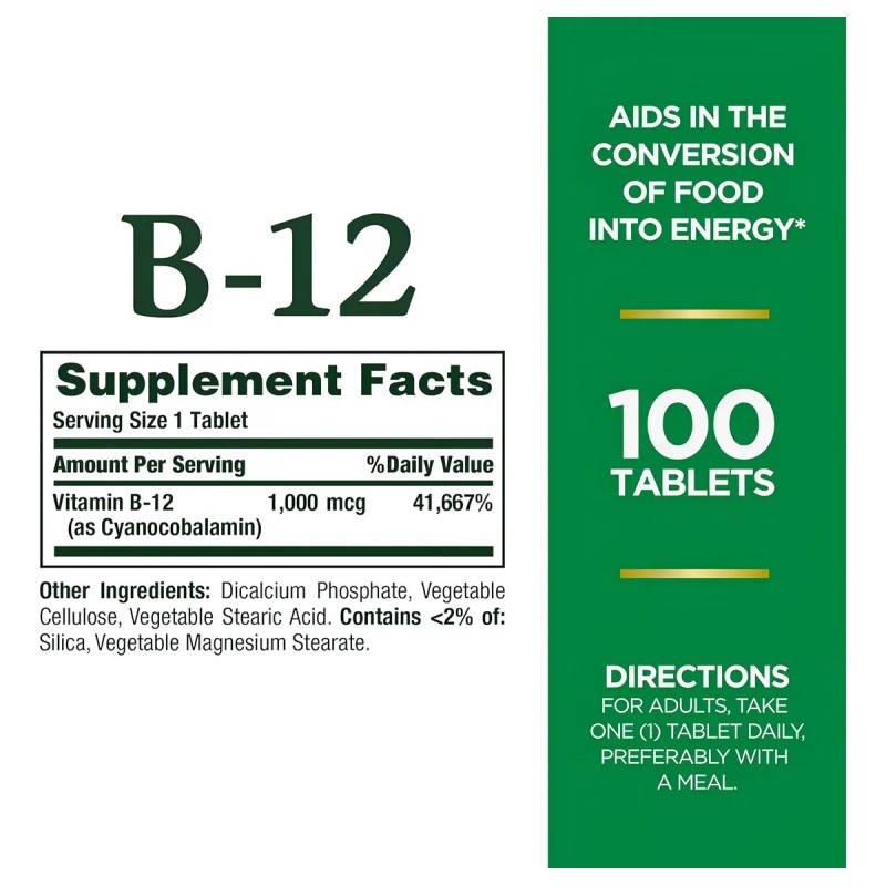 🌟 ⭐ Nature's Bounty Vitamina B-12 1000 mcg – 100 tabletas recubiertas, suplemento de vitamina B12, sin gluten ni OMG, sin sabores ni edulcorantes artificiales, apto para vegetarianos ⭐ 🌟