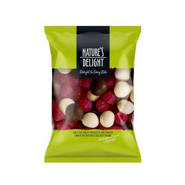 - The green bag for all our raspberry lovers! Rejoice in our mix of plump raspberry jellies mixed with fine milk and white chocolate coated raspberries. The raspberry, chocolate mix that’s too good to resist.