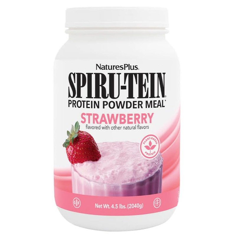 Natures Plus SPIRU-TEIN, Strawberry - 4.5 lbs - Plant-Based Protein Shake - Non-GMO, Vegetarian, Gluten Free - 60 Servings