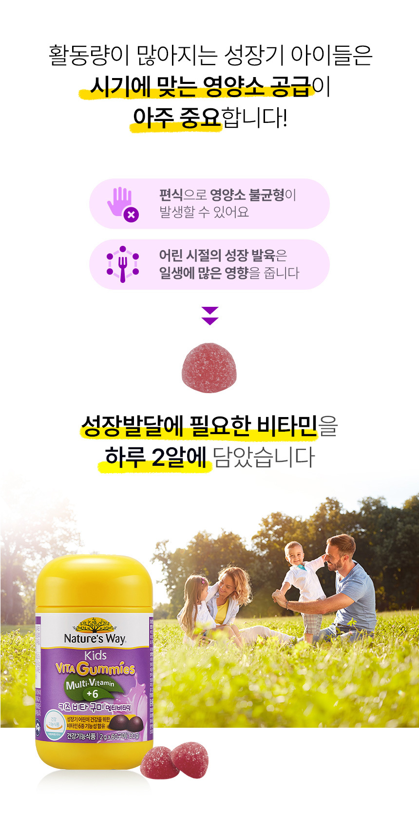 Natures Way 리뉴얼 60구미 키즈 멀티비타민 2개 Renewal 60 Gummies Kids Multivitamin 2 Pack