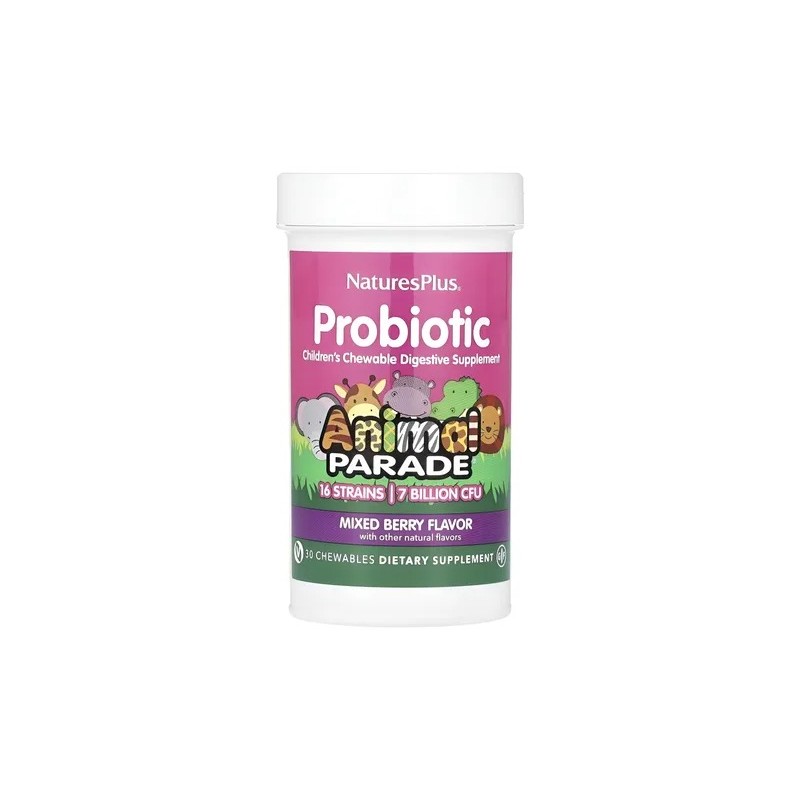 NaturesPlus Suplemento Probiótico para Niños en sabor a bayas mixtas es la opción ideal para apoyar la salud digestiva de los más pequeños. Formulado con una mezcla de probióticos de cepas especializadas, este suplemento masticable proporciona 20 mg de probióticos clínicamente respaldados y 40 mg de una mezcla potenciadora del microbioma en cada porción. Su formato en comprimidos masticables hace que sea fácil y agradable de consumir, promoviendo así una experiencia positiva para los niños.