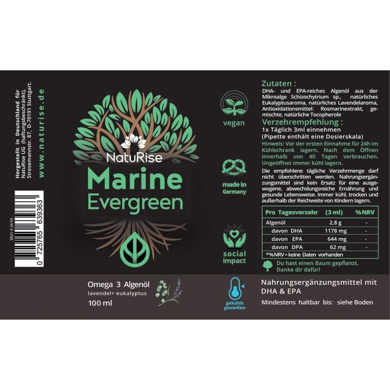 NatuRise® Omega 3 Vegan - Algenöl - 1884mg DHA, EPA & DPA - Hochdosiert - 100 ml - Laborgeprüft – Triglycerid-Form - Pipette mit Dosierskala - UV-Glas (Lavendel + Eukalyptus)