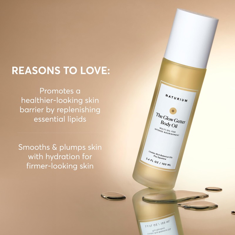 Our luxurious body oil deeply moisturizes, helping to reinforce skin's natural lipid layer.What it doesPromotes a healthier-looking skin barrier by replenishing essential lipidsAbsorbs quickly for instant hydrationSmooths & plumps skin with hydration for firmer-looking skinOur mission is to create clinically-effective, affordable skin care formulated with both potent natural ingredients and advanced synthetic ingredients. Naturium products utilize efficacious levels of active ingredients, are pH level appropriate, and are thoroughly tested for safety. Patch test advised for all products prior to use.