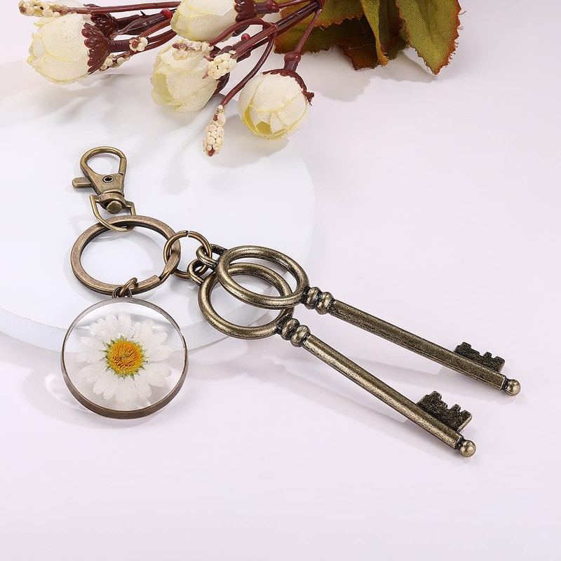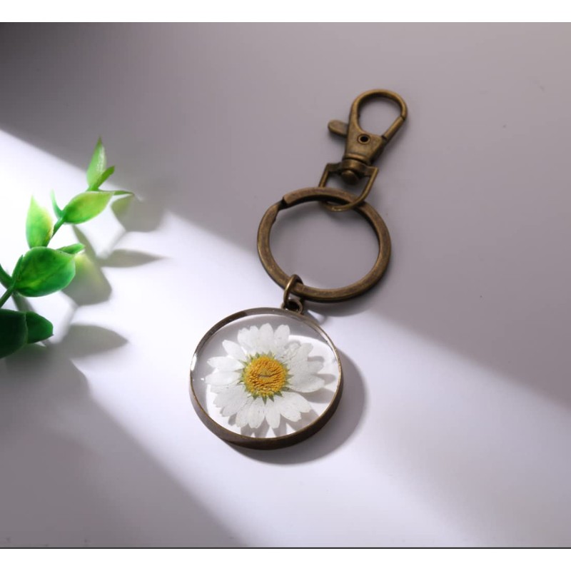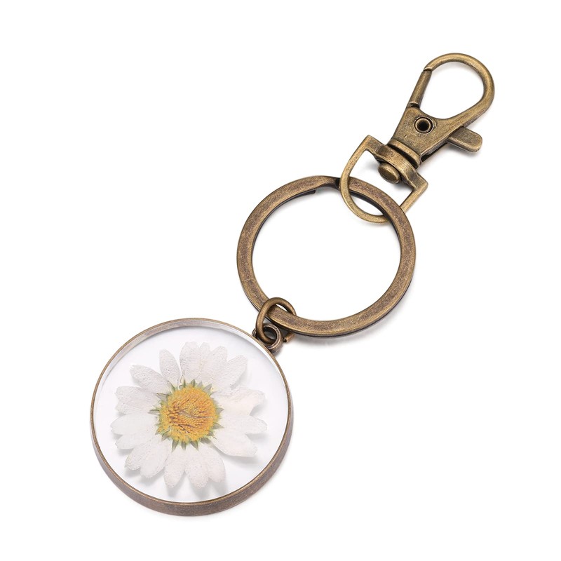 - 😊Schlüsselbundgröße: Gänseblümchen-Schlüsselanhänger mit gepresster Blume ist 1,2 Zoll groß und hat einen Karabinerverschluss und einen Schlüsselring mit 1 Zoll Durchmesser.