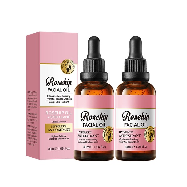 Natürliches Rosenöl Mit Antioxidantien – Feuchtigkeitsspendendes Gesichtsöl Mit Hagebuttenöl Für Anti-Aging & Straffung – Leichtes Pflegeöl Für Trockene Haut – 2er Pack Facial Oil