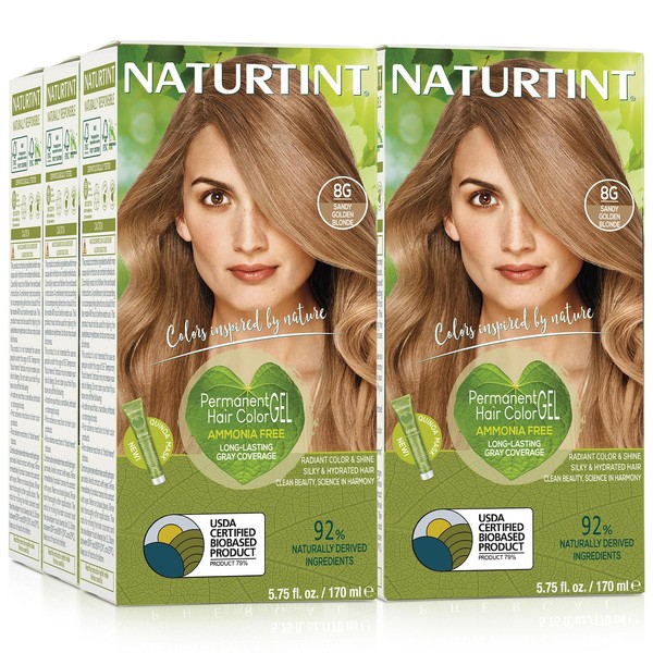 Naturtint Permanent Hair Color 8G Sandy Golden Blonde (Pack of 6), Ammonia Free, Vegan, Cruelty Free, up to 100% Gray Coverage, Long Lasting Results