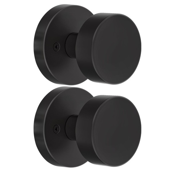 naubea 2 Pack Matte Black Dummy Door Knob Interior, Black Door Knobs for Bifold and Closet Doors, Heavy Duty Round Modern Door Handle