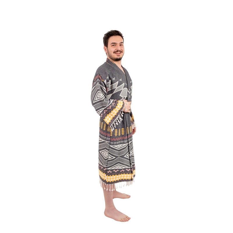 Experience ultimate comfort with our 100% Cotton Turkish Bathrobe designed for both men and women. Made from lightweight, organic Turkish cotton, this unisex robe envelops you in cloud-like softness, making it perfect for lounging at home or after a relaxing shower. Its breathable fabric is free from bad odors, ensuring a fresh and clean experience every time. Crafted from 100% pre-washed Turkish Peshtemal, this cotton bathrobe boasts exceptional absorbency and quick-drying properties, making it an ideal choice for the beach, pool, or spa.