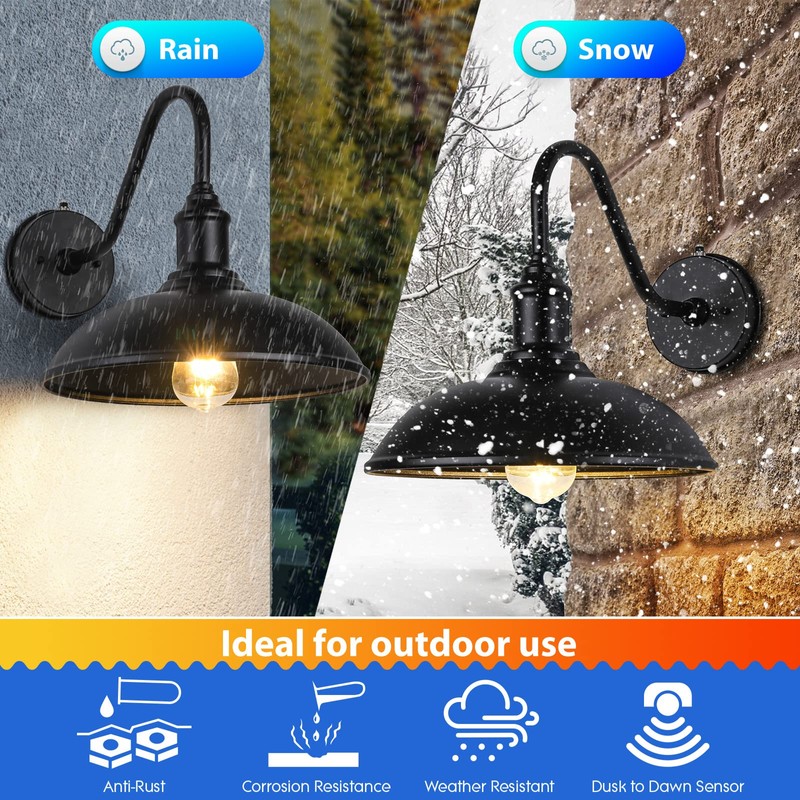 - Barn Lights Exterior Dusk to Dawn Sensor -- Auto sensing with hands-free to turn off at daytime and turn on at night, sconces farmhouse lighting fixtures with photocell control can help you to save energy.