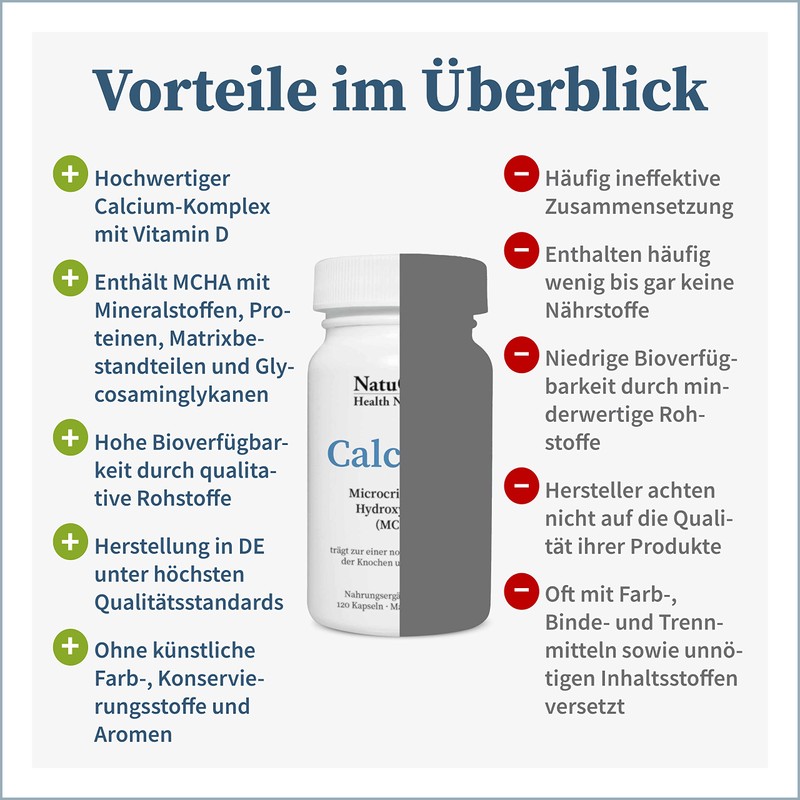 - The Microcristalline Hydroxyapatite (MCHA) is of natural origin and rich in calcium, which is needed to maintain normal bones, nails and teeth.