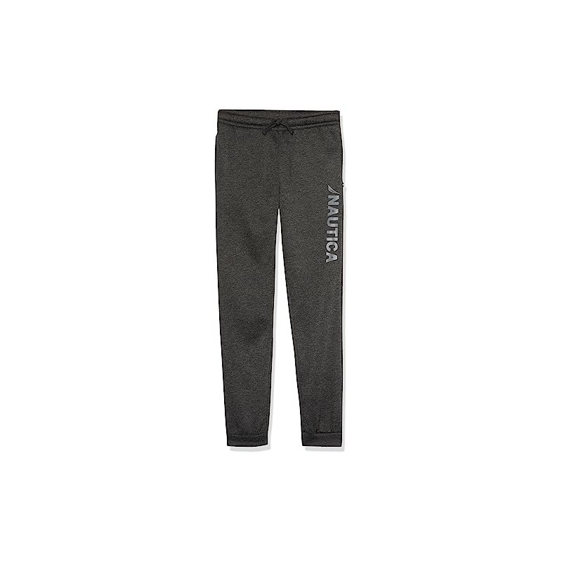 Nautica Boys' Pull-On Fleece Jogger Sweatpant, Drawstring Closure, Stacked Coal Heather, 4