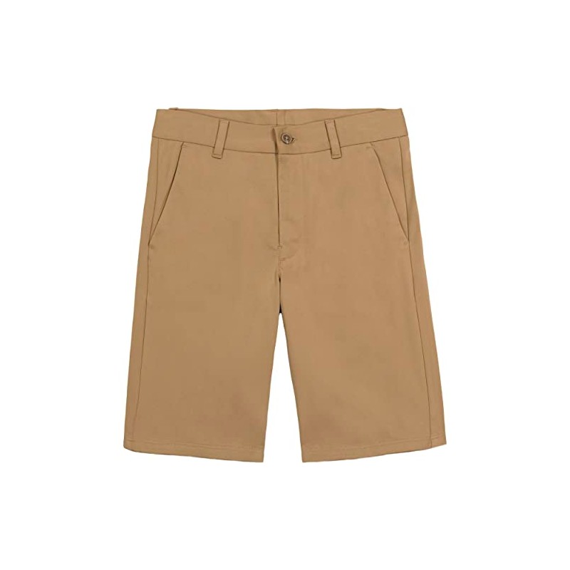 Nautica Boys' School Uniform Flat Front Twill Short, Burnished Khaki Knit, 18
